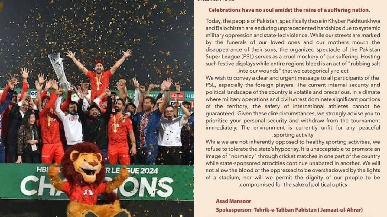 तहरीक-ए-तालिबान पाकिस्तान (TTP) से जुड़े गुट जमात-उल-अहरार (JuA) ने पीएसल शुरु होने से पहले ही विदेशी खिलाड़ियों के लिए धमकी भरा बयान जारी किया है. जिसके बाद अब पीएसएल में विदेशी खिलाड़ियों की सुरक्षा को लेकर बड़े सवाल खड़े कर दिए हैं.