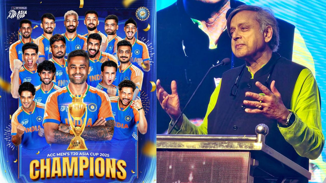 Asia Cup 2025 Final: एशिया कप 2025 के फाइनल में भारत की ऐतिहासिक जीत के बाद देशभर में जश्न का माहौल है. इसी बीच कांग्रेस नेता शशि थरूर का ट्वीट चर्चा का विषय बन गया है. थरूर ने अपनी प्रतिक्रिया में भारतीय टीम के शानदार प्रदर्शन की सराहना करने के साथ-साथ कोच गौतम गंभीर और सेलेक्टर्स को भी बधाई दी है.