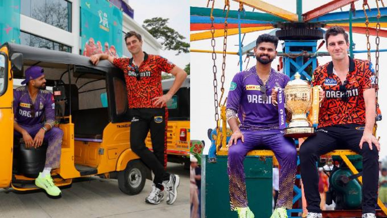 IPL 2024 Final KKR Vs SRH Photoshoot : 26 मई को आईपीएल 2024 का फाइनल मुकाबला खेला जाएगा. एक तरफ कोलकाता नाइटराइडर्स तो दूसरी ओर सनराइजर्स हैदराबाद होगी. दोनों टीम जीत हासिल करने के उद्देश्य से कल चेन्नई के एम ए चिदंबरम स्टेडियम यानी चेपॉक स्टेडियम में खेला जाएगा. दोनों टीमों प्वाइंट टेबल की टॉप टू टीमें हैं. अब बस ट्रॉफी की लड़ाई का इंतजार है. आईपीएल की ट्रॉफी ने आज कई जगहों का सफर किया. केकेआर के कप्तान श्रेयस अय्यर और एसआरएच के कप्तान पैट कमिंस के साथ IPL ट्रॉफी ने रेतिली नाव से लेकर झूले तक का सफर तय किया. फाइनल से पहले फोटोशूट हुआ. फोटोशूट में अलग-अलग जगहों पर ट्रॉफी के साथ फोटो क्लिक की गईं. दोनों कप्तान फोटोशूट के लिए टेंपो से शूटिंग स्थल तक पहुंचे थे.