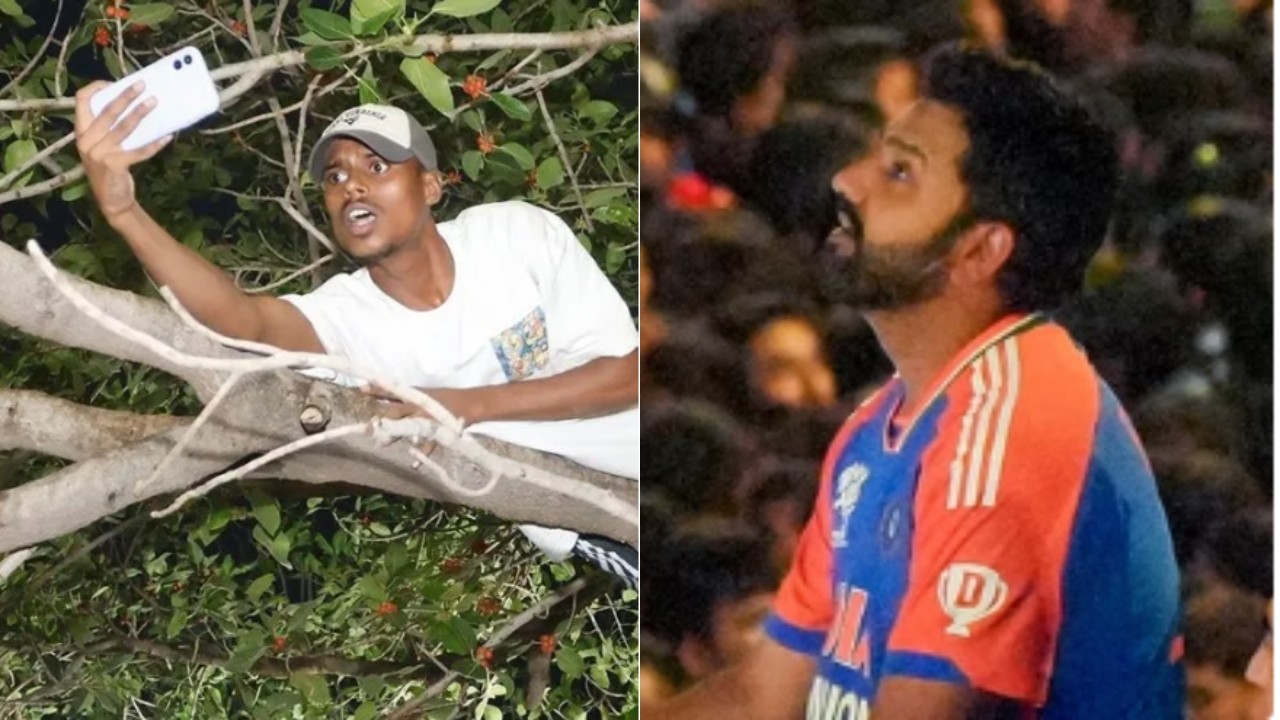 टी20 वर्ल्ड कप जीतकर आई टीम के स्वागत में गुरुवार को मुंबई में विक्ट्री परेड निकाला गया. मरीन ड्राइल पर जनसैलाब उमड़ पड़ा जिससे दक्षिण मुंबई का यातायात पूरी तरह से ठप्प हो गया. टीम ओपन बस में सवार होकर निकली. फैंस पूरे रास्ते टीम को चियर करते रहे. मरीन ड्राइव से वानखेड़े स्टेडियम तक टीम इंडिया की विजय परेड के दौरान जो पागलपन दिखा, वह सिर्फ़ सड़कों तक ही सीमित नहीं था. कई फैंस पेड़ पर चढ़ गए.
