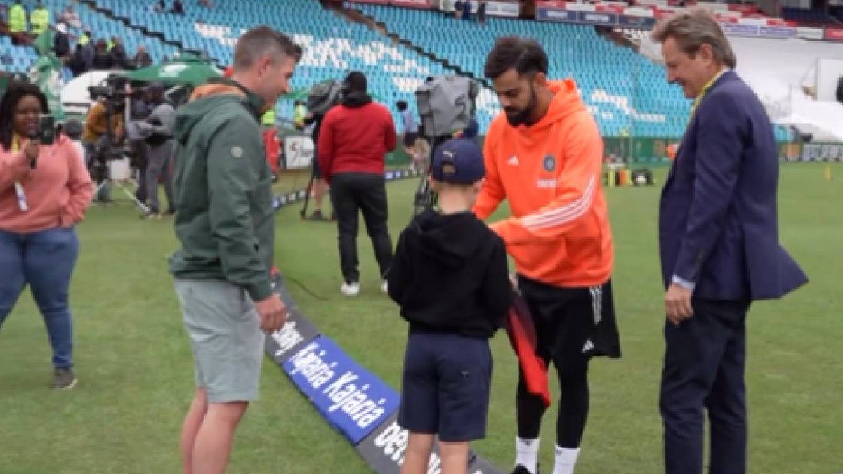 IND vs SA, Virat Kohli: भारत और साउथ अफ्रीका के बीच सेंयुरियन में पहला टेस्ट मैच खेला जा रहा है. इस मैच के दूसरे दिन भारतीय क्रिकेट के दिग्गज खिलाड़ी विराट कोहली ने अपने एक नन्हे फैन से मुलाकात की. विराट ने अपने इस फैन को ऑटोग्राफ भी दिया और उसके साथ ग्राउड पर फोटो भी खिचवाई.