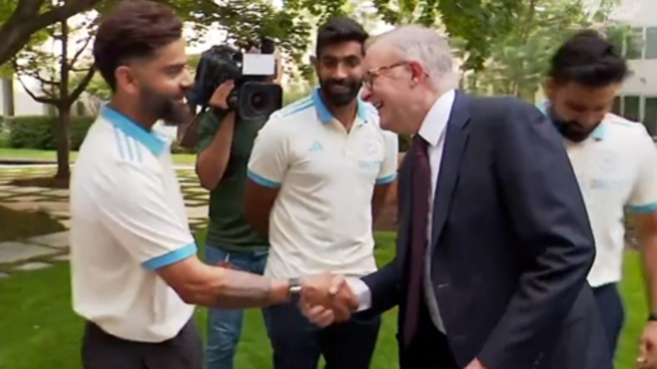 दूसरे टेस्ट मैच से पहले टीम ऑस्ट्रेलियाई प्रधानमंत्री एंथनी अल्बानीस ने गुरुवार को कैनबरा में पार्लियामेंट हाउस पहुंची. पीएम अल्बानीस ने पर्थ टेस्ट में मैच विजयी प्रदर्शन करने को लेकर जसप्रीत बुमराह व विराट कोहली की जमकर तारीफ की. ऑस्ट्रेलियाई पीएम विराट कोहली से हंसी मजाक किए. दोनों के बीच मजेदार बातचीत हुई.
