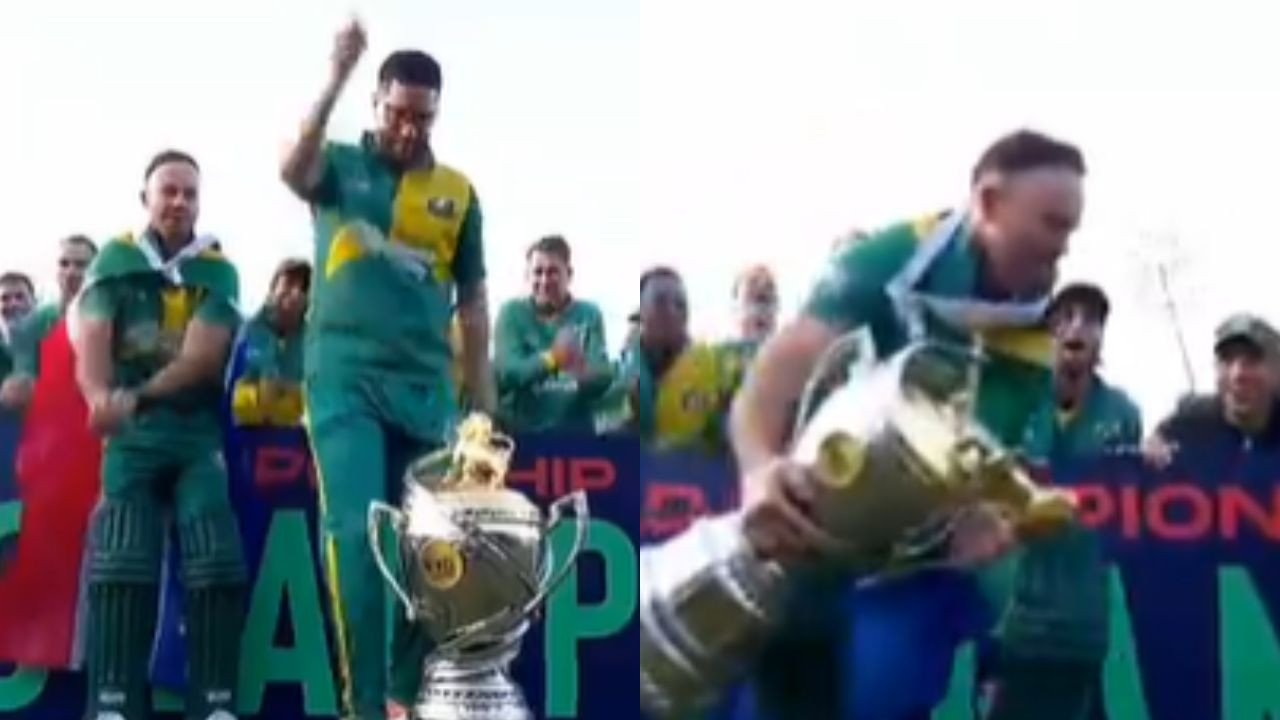 जीत के बाद साउथ अफ्रीका की टीम ने मैदान पर जमकर जश्न मनाया. इस दौरान वेन पार्नेल ने सोशल मीडिया पर वायरल 'औरा फार्मिंग' डांस शुरू किया, जो एक मजेदार मीम ट्रेंड है. एबी डी विलियर्स भी इसमें शामिल हो गए और अपनी चिर-परिचित मुस्कान के साथ यह डांस किया. उनका यह जश्न स्टैंड्स में मौजूद दर्शकों को खूब पसंद आया और इसका वीडियो सोशल मीडिया पर आग की तरह फैल गया.