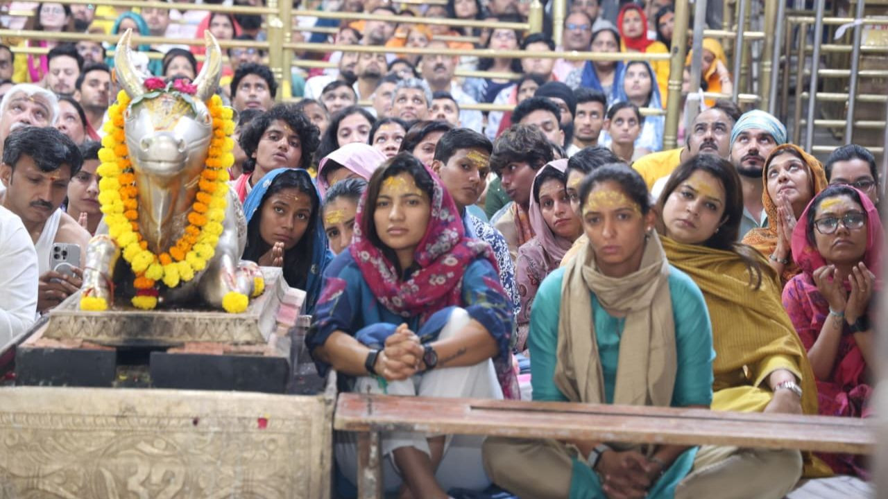 Ujjain, Madhya Pradesh: Ahead of their World Cup match against England, the Indian women’s cricket team visited Ujjain’s Mahakaleshwar Temple, seeking Lord Shiva’s blessings pic.twitter.com/ciyohzyyxl