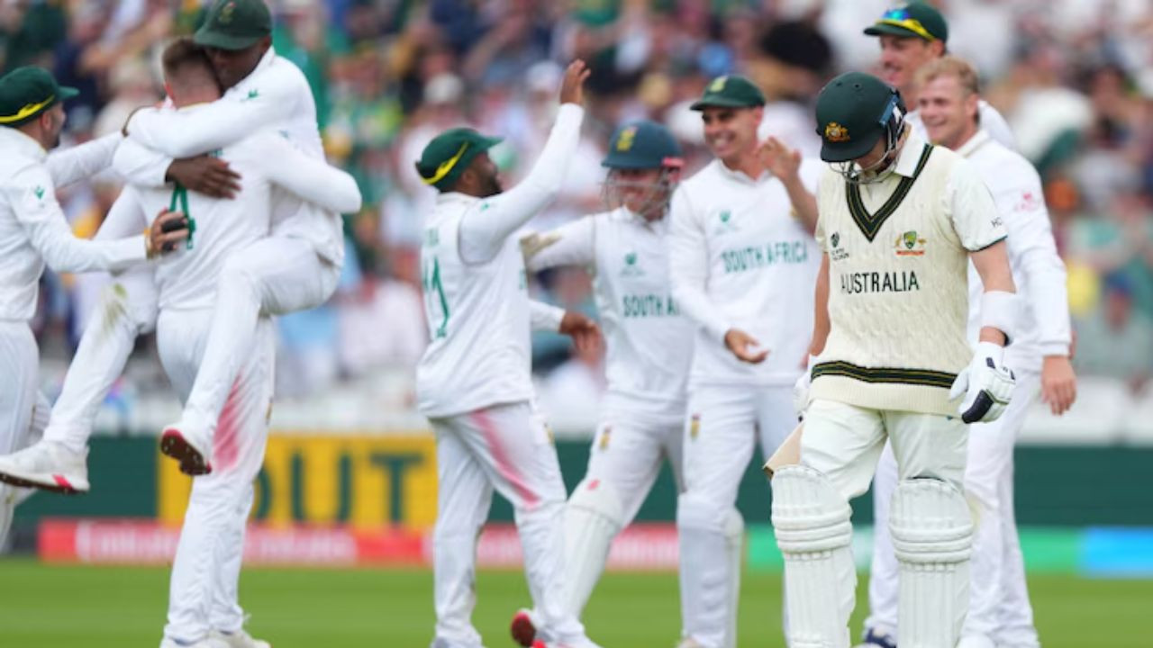 WTC Final 2025: 11 जून 2025 को लॉर्ड्स क्रिकेट ग्राउंड में विश्व टेस्ट चैंपियनशिप (WTC) फाइनल के पहले दिन गेंदबाजों ने कमाल दिखाया. दक्षिण अफ्रीका ने टॉस जीतकर पहले गेंदबाजी करने का फैसला किया और ऑस्ट्रेलिया को सिर्फ 212 रन पर ऑलआउट कर दिया. लेकिन दक्षिण अफ्रीका की शुरुआत भी खराब रही, क्योंकि उनके बल्लेबाज भी जल्दी-जल्दी आउट हो गए. इस मैच में एक ऐसा रिकॉर्ड बना, जो क्रिकेट के 145 साल के इतिहास में पहली बार देखने को मिला.