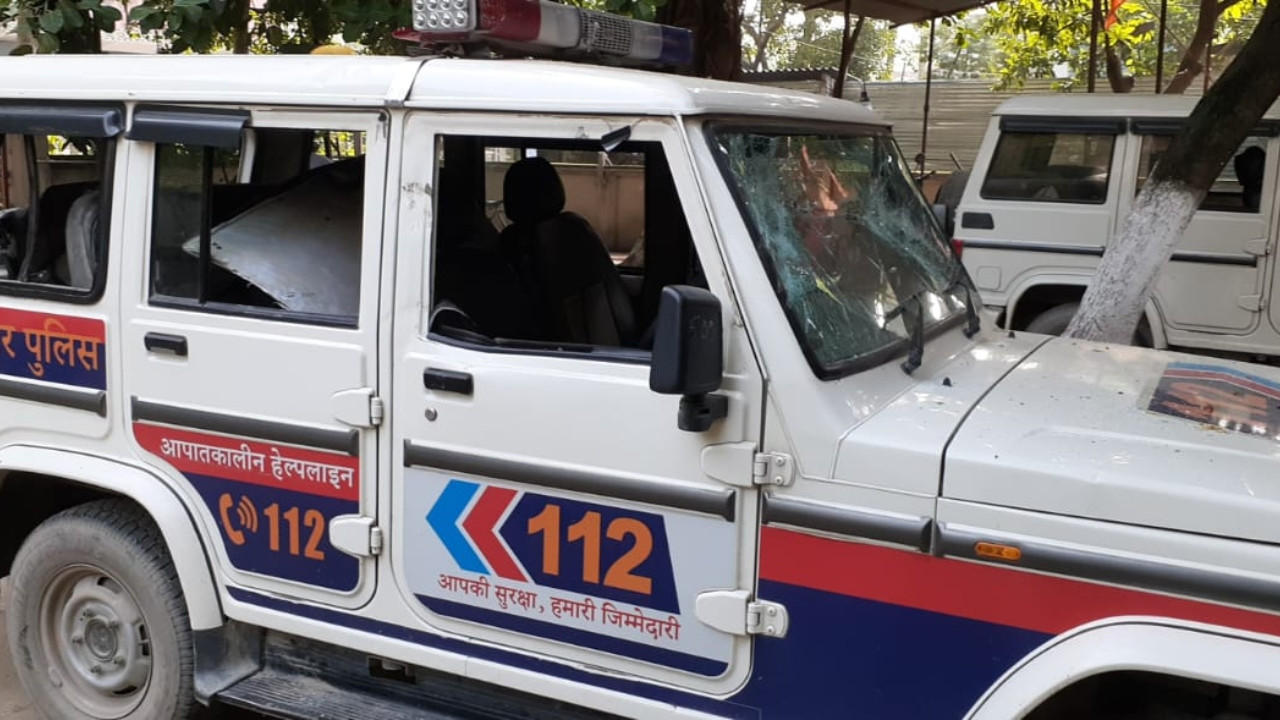 पुलिस हथियार छीने, वाहन क्षतिग्रस्त