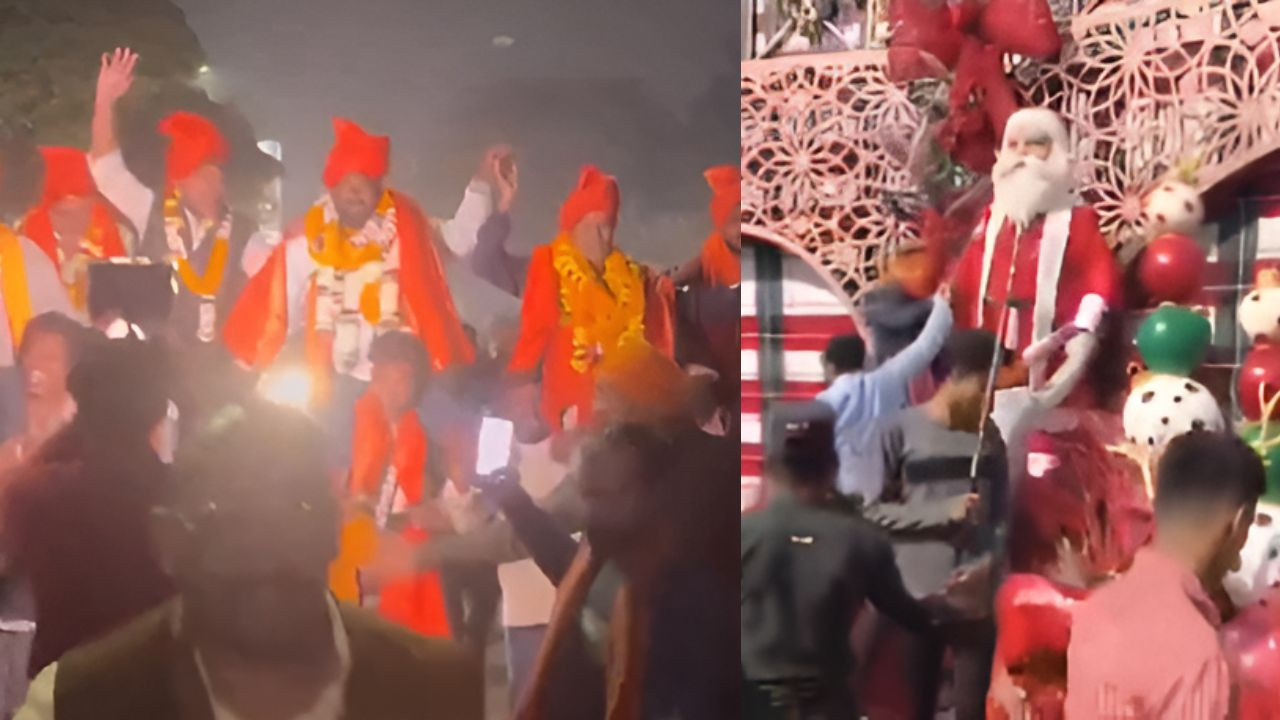 रायपुर के मैग्नेटो मॉल में जबरन घुसकर क्रिसमस की सजावट तोड़ने-फोड़ने वाले बजरंग दल के छह आरोपियों को जमानत पर रिहा कर दिया गया। जमानत मिलते ही उन्हें हीरो की तरह स्वागत दिया गया—ढोल-नगाड़े बजे, माला पहनाई गई, जश्न मनाया गया और खुलेआम ‘ईसाई मिशनरी मुर्दाबाद’ के नारे लगाए गए।