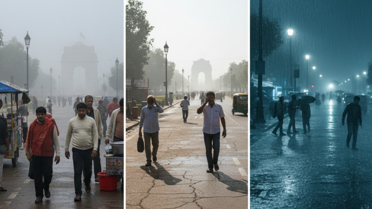 Delhi-NCR Weather: दिल्ली का अक्टूबर इस बार लोगों के लिए हैरानी से भरा रहा है. एक तरफ सुबह की हल्की ठंड लोगों को सर्दियों की दस्तक का एहसास करा रही है, तो वहीं दोपहर की धूप अचानक गर्मी का अहसास दिला देती है. इसके बाद शाम ढलते ही आसमान से बरसते बादल लोगों को छाता उठाने पर मजबूर कर देते हैं. राजधानी में मौसम का यह अजीबो-गरीब मिजाज त्योहारों के बीच लोगों की दिनचर्या को प्रभावित कर रहा है.