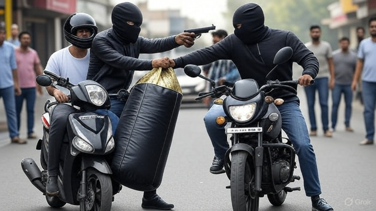 पुलिस के अनुसार, शिवम कुमार यादव और उनका साथी राघव रविवार दोपहर होंडा एक्टिवा स्कूटी से चांदनी चौक से भैरों मंदिर की ओर जा रहे थे. तभी अचानक अपाचे बाइक पर सवार दो अज्ञात हमलावरों ने उनका रास्ता रोका. बदमाशों ने पिस्टल दिखाकर दोनों को डराया और बैग छीनकर मौके से फरार हो गए. बैग में लगभग 500 ग्राम सोना और 35 किलो चांदी मौजूद थी.
