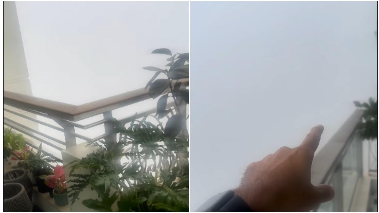 वायरल वीडियो में साफ देखा जा सकता है कि बालकनी के बाहर पूरा इलाका एक सफेद चादर जैसे स्मॉग से ढका हुआ है. ऊंची इमारतें सड़कें और आसपास का कोई भी दृश्य नजर नहीं आता. यह वीडियो दिल्ली NCR में प्रदूषण की गंभीर स्थिति को उजागर करता है.