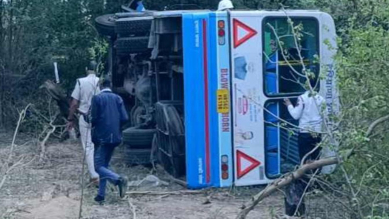 टक्कर इतनी जोरदार थी कि बस सड़क किनारे बने गड्ढे में पलट गई. हादसे के समय बस में 50 से अधिक यात्री सवार थे, जिनमें कई लोगों को चोटें आई हैं.