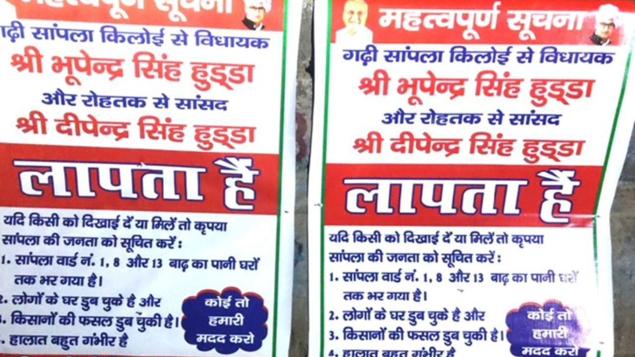सांसद दीपेंद्र हुड्डा और पूर्व सीएम भूपेंद्र सिंह हुड्डा के लगे लापता होने के पोस्टर