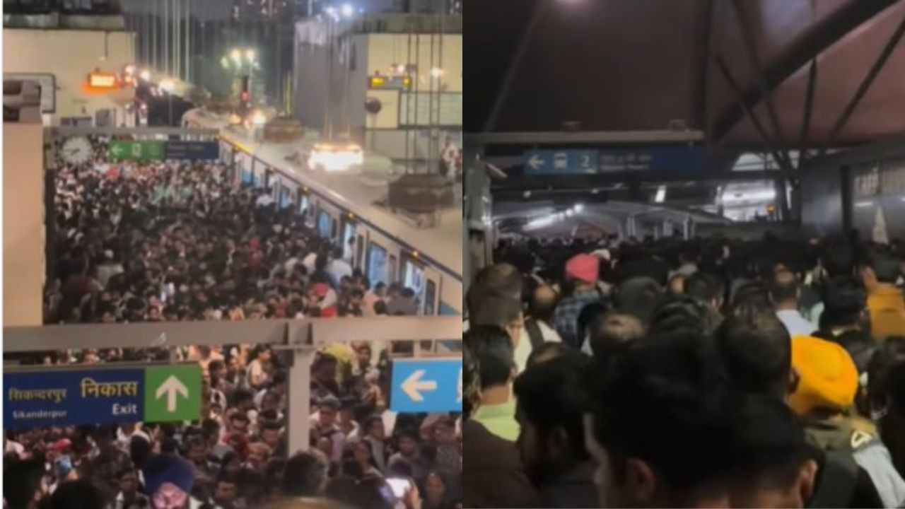 सोमवार को गुरुग्राम के सिकंदरपुर रेपिड मेट्रो स्टेशन का नजारा बेहद डरावना था. सड़क के जाम से बचने के लिए मेट्रो स्टेशन पर भीड़ का सैलाब उमड़ पड़ा.