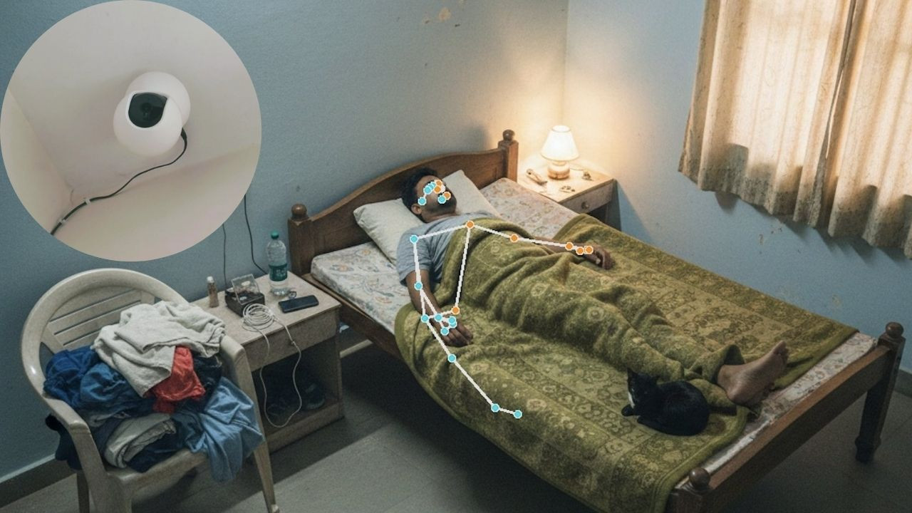 प्रोजेक्ट के साथ शेयर की गई एक फोटो में उसका बेडरूम दिखता है, जिसमें शरीर के जोड़ों पर कैमरा ओवरले और 'FAN_ON ratio=2.32' टेक्स्ट से निशान हैं, जो बताता है कि पोज डिटेक्शन सिस्टम को कैसे गाइड करता है.