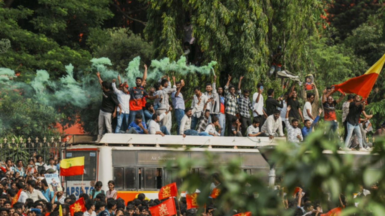 आरसीबी ने 18 साल के लंबे इंतजार के बाद पहली बार आईपीएल ट्रॉफी अपने नाम की. इस जीत का जश्न मनाने के लिए हजारों फैंस बुधवार शाम को चिन्नास्वामी स्टेडियम के बाहर जमा हो गए. भीड़ इतनी ज्यादा थी कि कई लोग पेड़ों और बसों पर चढ़ गए, ताकि उन्हें अपनी टीम की एक झलक मिल सके. लेकिन यह उत्साह जल्द ही एक बड़े हादसे में बदल गया.