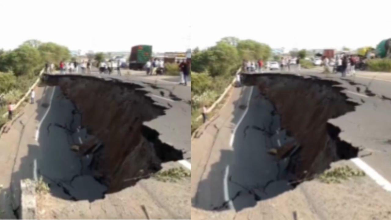 VIDEO | Bhopal, Madhya Pradesh: A 50-meter stretch of the Bhopal-Indore bypass road, containing a pit about 20 feet deep, caved in near the railway track. Further details awaited.