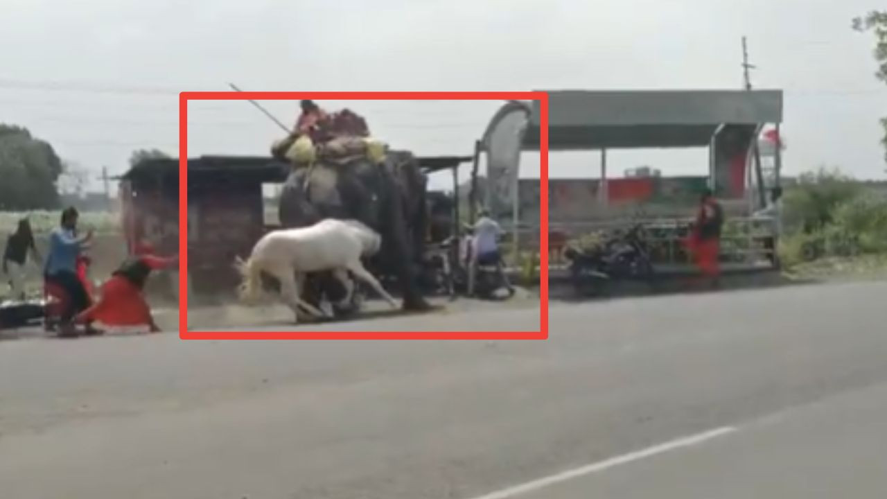 इस रोमांचक जंग के बीच सबसे बड़ी राहत की बात यह रही कि हाथी और घोड़े की लड़ाई में किसी इंसान को कोई नुकसान नहीं पहुंचा. हां ये बात और है कि इस दौरान सड़क पर खड़ी एक बाइक गिर गई.