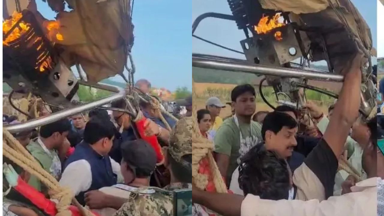 #WATCH : Fire breaks out in hot air balloon carrying Madhya Pradesh CM Mohan Yadav in Mandsaur