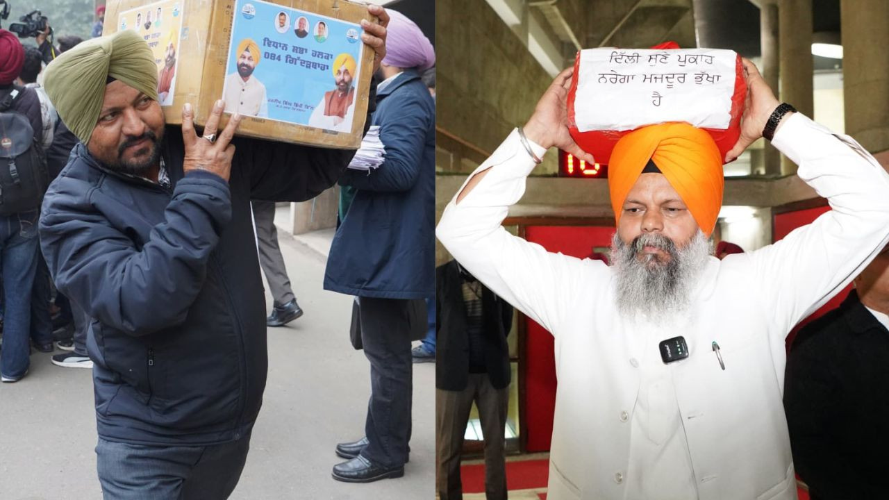 आम आदमी पार्टी के विधायक पंजाब विधानसभा के विशेष सत्र में मनरेगा मजदूरों द्वारा लिखे गए लाखों पत्र लेकर पहुंचे. यह पत्र उन मेहनतकश परिवारों के दर्द और संघर्ष की दास्तान बयां करते हैं, जो महात्मा गांधी राष्ट्रीय ग्रामीण रोजगार गारंटी योजना (मनरेगा) के तहत काम करके अपना जीवन-यापन करते हैं. बता दें कि मनरेगा मजदूर भी आज पंजाब विधान सभा में हाजिर थे.