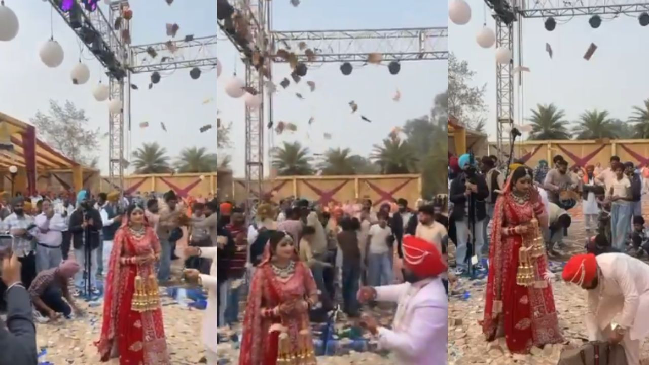 वीडियो में देखा जा सकता है कि दुल्हन अपने शादी के कपड़ों में वेन्यू पर खड़ी है. इस दौरान उसका दूल्हा उस पर नोटों का बंडल उड़ाता नजर आ रहा है. हालांकि पंजाब की शादियों में यह एक आम बात है लेकिन यह मुद्दा तब तूल पकड़ा जब सोशल मीडिया पर लोगों ने दावा किया कि इस शादी में करोड़ों रुपये उड़ा दिए. यह वीडियो तरनतारन का बताया जा रहा है. जिसमें लोग बज रहे गाने पर नाच रहें हैं और वहीं दूल्हा कैश हवा में उड़ाता नजर आ रहा है. वहीं दुल्हन चुप-चाप खड़ी नजर आ रही है. दूल्हे के भाई सिकंदर सिंह ने साफ किया कि जश्न के दौरान पैसे लुटाए तो गए, लेकिन यह रकम ऑनलाइन चल रहे आंकड़ों के आस-पास भी नहीं थी.