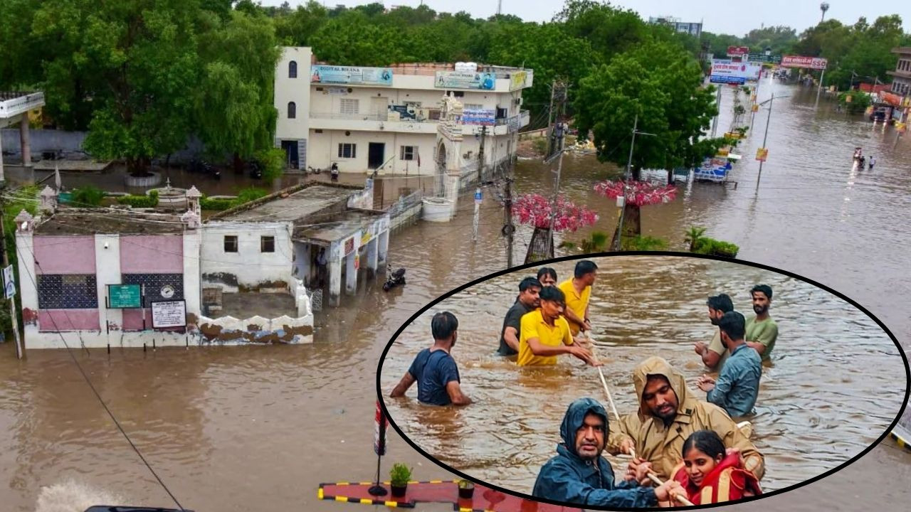Rajasthan Flood Update: भारत मौसम विज्ञान विभाग यानी IMD ने राजस्थान के 11 जिलों में अगले 24 घंटों के लिए अति भारी वर्षा का डबल अलर्ट जारी किया है. अलवर, बांसवाड़ा, डूंगरपुर, झुंझुनू, राजसमंद, बाड़मेर, चुरू और पाली में भारी बारिश की संभावना है, जबकि जालोर, उदयपुर और सिरोही में भारी बारिश का अनुमान जताया गया है. इन इलाकों में दिनभर वर्षा जारी रहने की संभावना है.