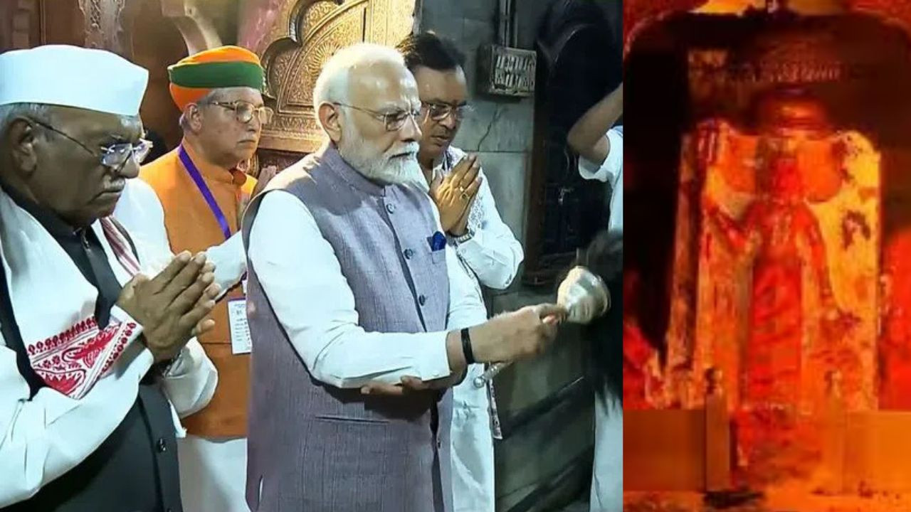 PM Modi In Rajasthan: प्रधानमंत्री नरेंद्र मोदी ने गुरुवार को राजस्थान के बीकानेर जिले के देशनोक में स्थित प्रसिद्ध करणी माता मंदिर में पूजा-अर्चना की. इस दौरान पीएम मोदी ने करणी माता के चरणों में शीश नवाया और देशवासियों के लिए सुख-समृद्धि की कामना की.