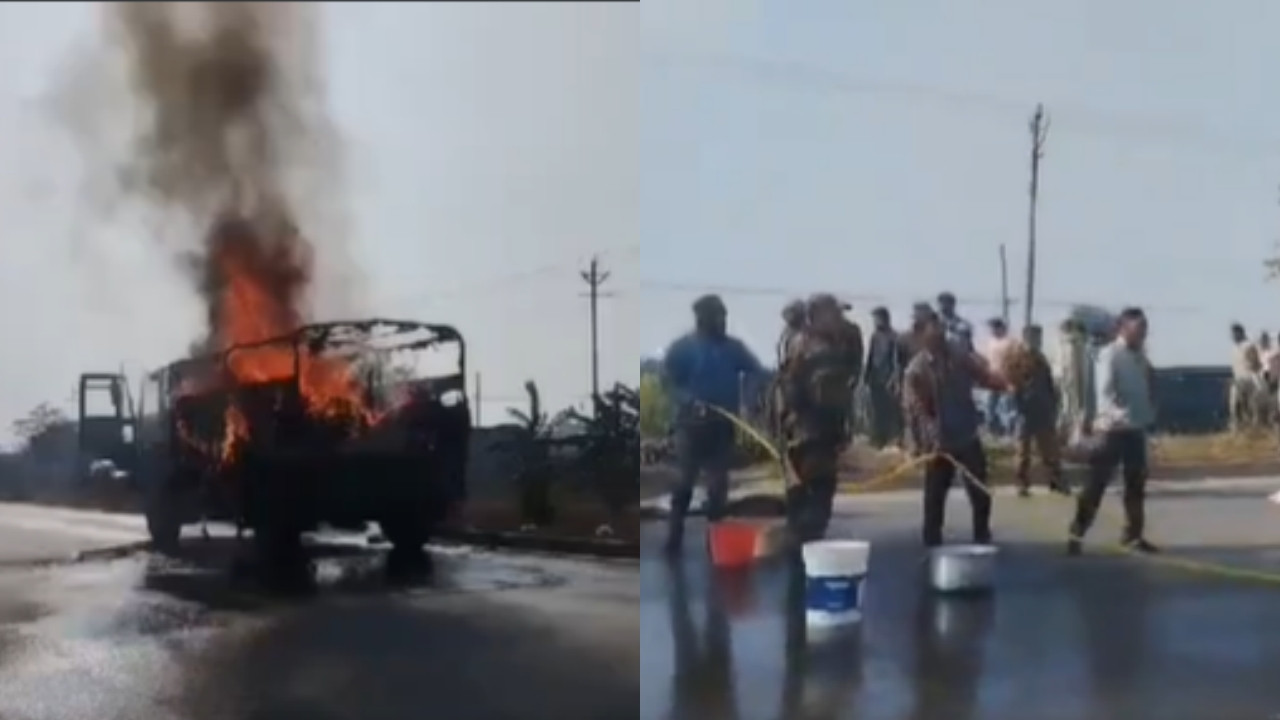 इस घटना का वीडियो भी सामने आया है, जिसमें आर्मी का ट्रक धू, धूकर जलता दिखाई दे रहा है और उससे उठती तीव्र लपटें तेजी से आसमान की ओर उठ रही हैं.