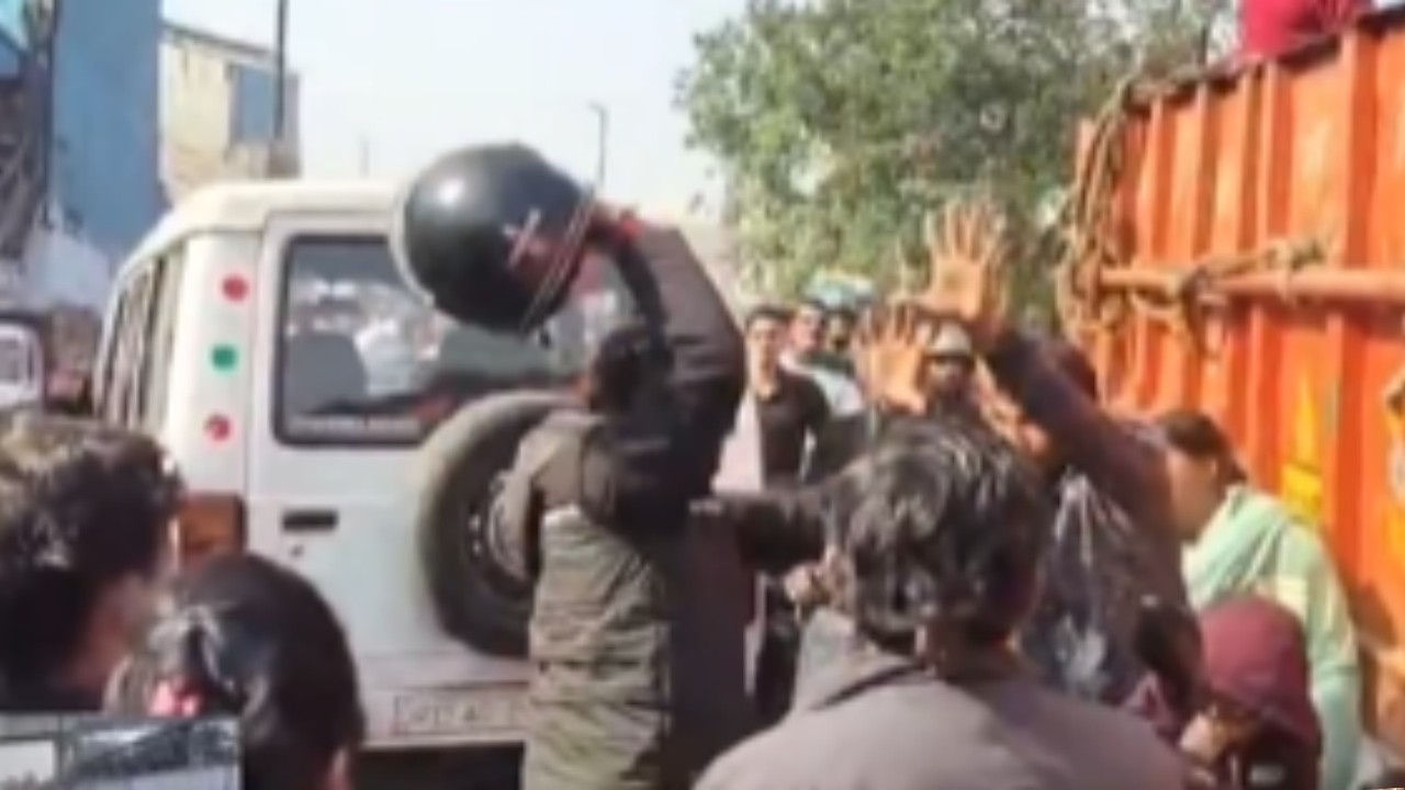 पुलिकर्मी गाड़ी को धक्का देकर उसे सड़क से हटाने की कोशिश करते हैं लेकिन इस दौरान सड़क पर जाम लग जाता है. तभी जाम में फंसे दो बाइक सवारों के बीच किसी बात को लेकर कहासुनी हो जाती है और तभी एक बाइक सवार दूसरे बाइक सवार के सिर पर तड़ाक से हेलमेट मार देता है.