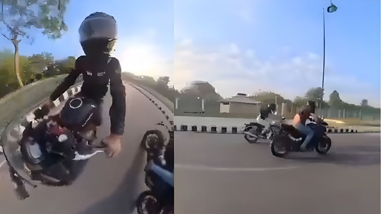 पूरी घटना एक कैम रिकॉर्डर में कैद हो गई, जो नैतिक के साथ स्पोर्ट्स बाइक पर स्टंट कर रहे उसके साथी के हेलमेट पर लगा हुआ था. इस दुर्घटना में नैतिक का साथी टक्कर से बाल-बाल बच गया. वहीं नैतिक की बाइक बुरी तरह क्षतिग्रस्त हो गई.