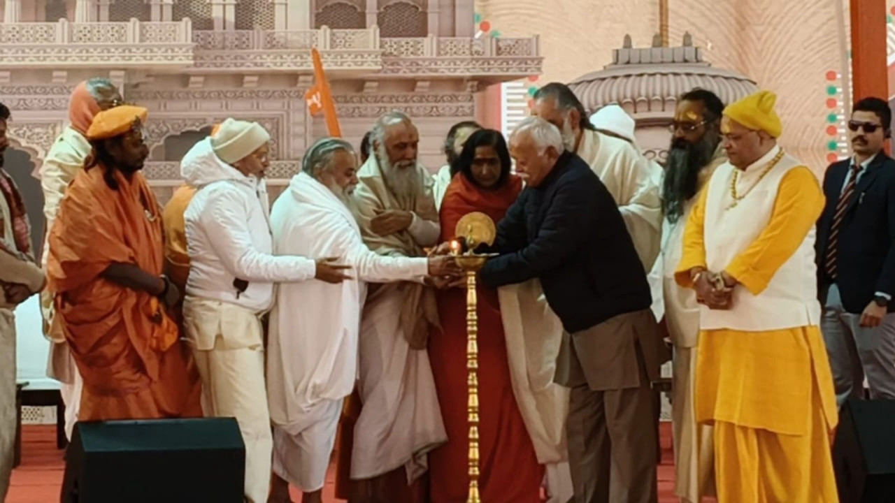 कार्यक्रम का शुभारंभ संघ प्रमुख मोहन भागवत ने संतों के साथ दीप प्रज्वलन कर किया. इस अवसर पर मंच पर श्री सुदामा कुटी के महंत जगद्गुरु सुतीक्ष्ण दास महाराज, अयोध्या से आए संत महामंडलेश्वर कमल नयन दास महाराज, दीदी मां साध्वी ऋतंभरा, गीता मनीषी ज्ञानानंद महाराज सहित देशभर से आए अनेक संत और धर्माचार्य उपस्थित रहे.