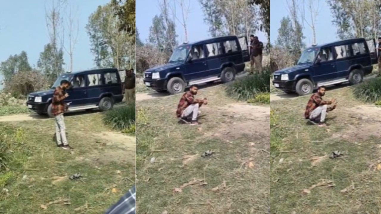 In a dramatic encounter, UP's Meerut Police in plain clothes surround murder accsued Pradeep armed with two country-made pistol. He had killed his wife' paramour and threatened to kill his wife in a video. https://t.co/j5L0APWp45 pic.twitter.com/bIogD0RrHQ