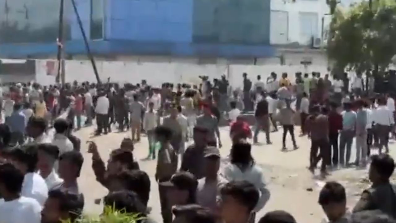 इस वीडियो में कंपनी के पास भारी संख्या में पुलिस बल तैनात किया गया है, जहां कर्मचारियों का वेतन वृद्धि की मांग को लेकर किया जा रहा विरोध प्रदर्शन हिंसक हो गया था. इस दौरान वाहनों और संपत्तियों को नुकसान पहुंचाया गया.