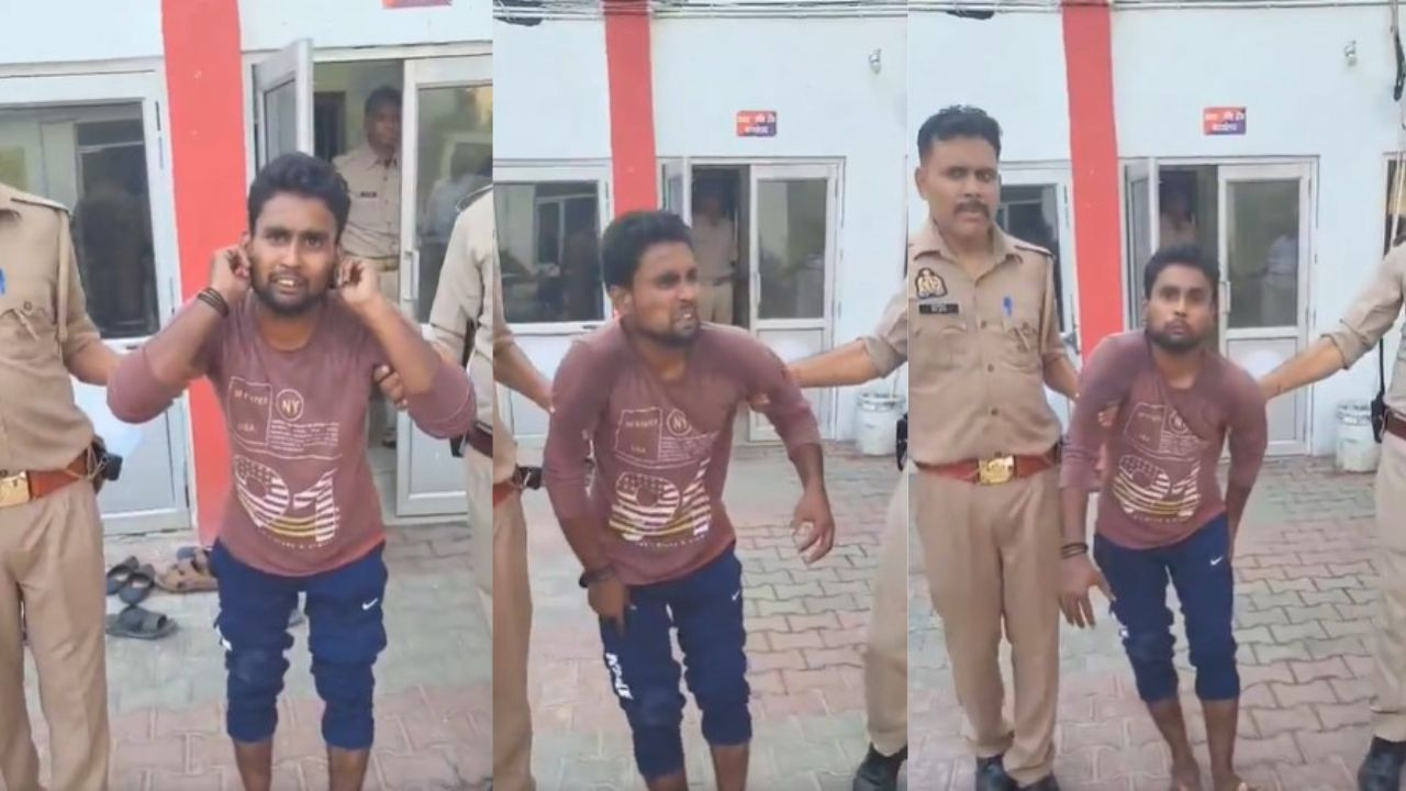 यह पूरी वारदात वहां लगे सीसीटीवी कैमरे में कैद हो गई. वीडियो वायरल होने पर पुलिस ने मामले का संज्ञान लिया और आरोपी को धर दबोचा और उसकी जमकर सुताई की. आरोपी की पहचान सुहैल के रूप में हुई है. पुलिस के सामने सुहैल ने कान पकड़कर माफी मांगी और कहा साहब गलती हो गई अब दोबारा नहीं होगी.