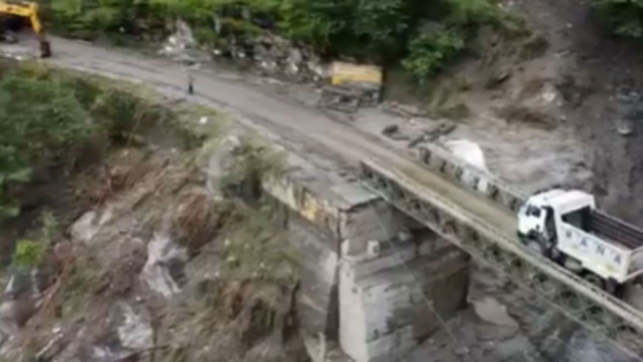 #WATCH | Uttarakhand | The bridge connecting Uttarkashi to Harsil has been reconstructed to facilitate easy movement of machinery and relief materials in the aftermath of the cloudburst and flash floods that caused mass destruction in Dharali and Harsil of Uttarkashi district on… pic.twitter.com/hTBOIzwOI4