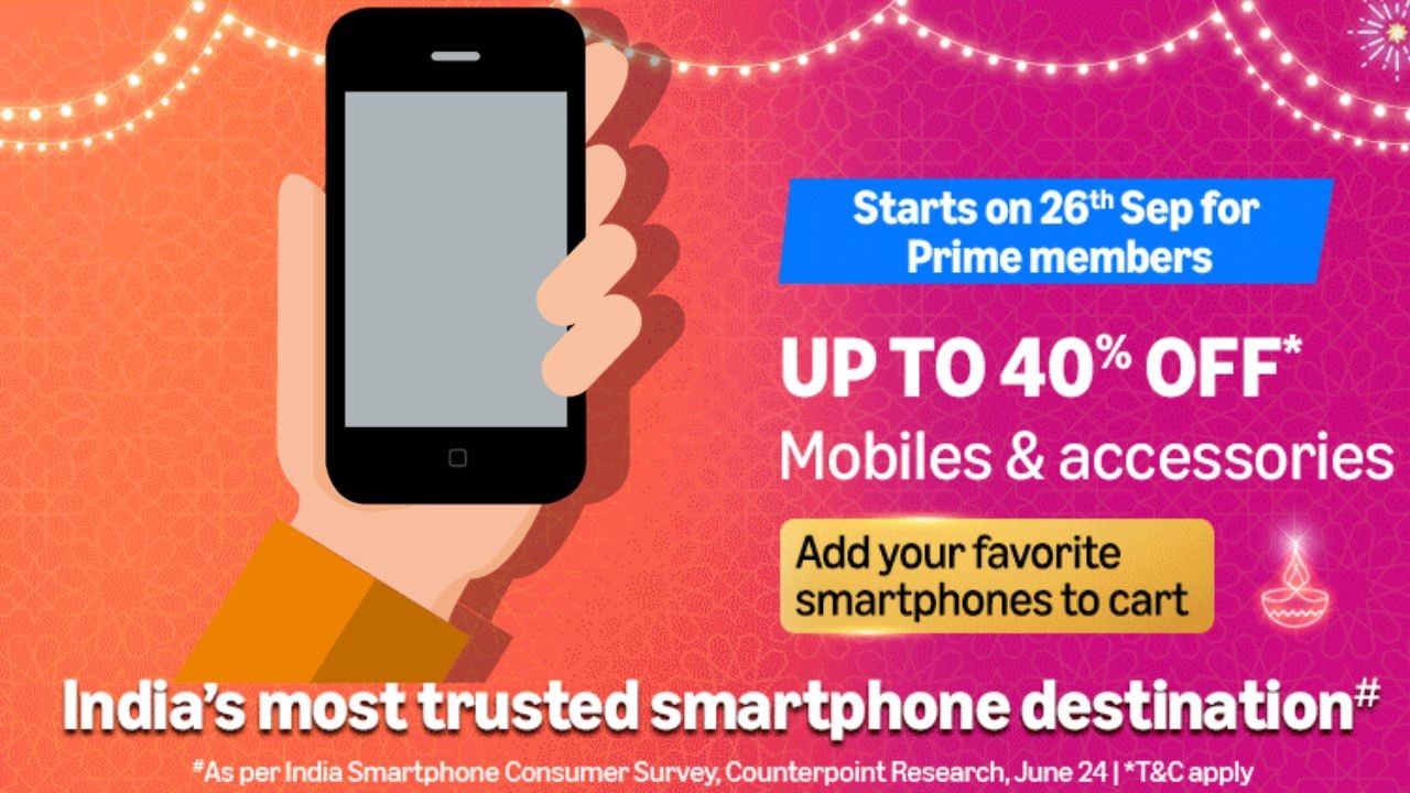 Amazon Great Indian Festival Sale आने वाली है. यह सेल 27 सितंबर से शुरू होगी और इस दौरान कई कैटेगरीज पर बंपर डिस्काउंट दिए जाएंगे जिनमें स्मार्टफोन्स भी हैं. नया स्मार्टफोन खरीदना है तो आपको यहां कई फोन्स पर भारी डिस्काउंट मिल जाएगा. इनमें महंगे से लेकर सस्ते फोन्स तक कई शामिल हैं. अगर आप अपने लिए नया फोन खरीदने के बारे में सोच रहे हैं तो यहां हम आपको कुछ स्मार्टफोन्स की लिस्ट दे रहे हैं.