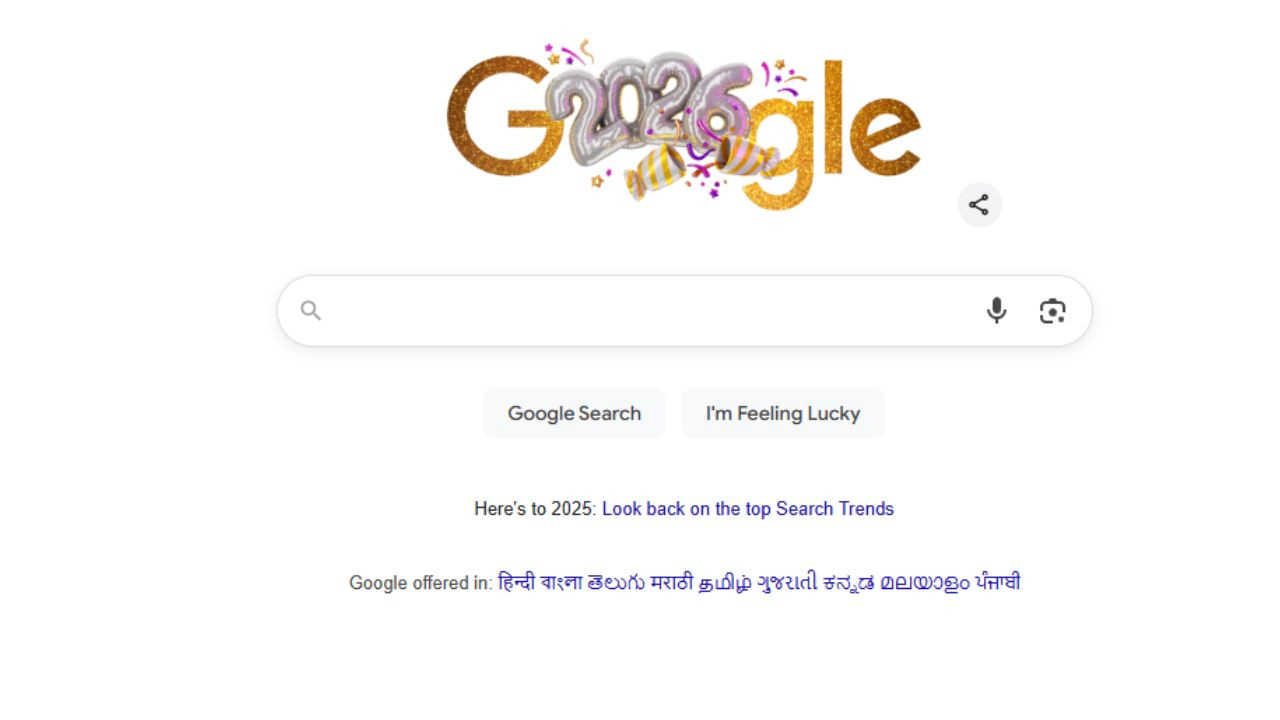 कैसा है गूगल डूडल: पहले गूगल के बीच 2025 लिखा दिख रहा है. फिर 2026 एक टॉफी के अंदर से बाहर निकलता है. यह सिल्वर गुब्बारों में दिखाया गया है. यह पुराने साल से नए साल में बदलाव का प्रतीक है. एक पार्टी पॉपर से कंफेटी और पार्टी की चीजें निकल रही हैं, जो जश्न के माहौल को दिखा रही हैं.