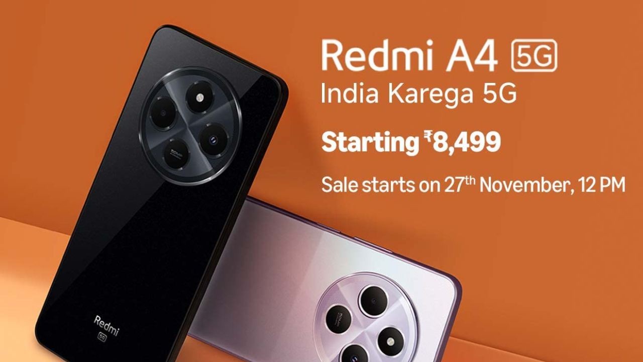 Redmi A4 5G की कीमत 4 जीबी रैम और 64 जीबी स्टोरेज के लिए 8,499 रुपये है. वहीं, इसके 8 जीबी रैम और 64 जीबी स्टोरेज वेरिएंट की कीमत 9,499 रुपये है. यह स्पार्कल पर्पल और स्टाररी ब्लैक कलर ऑप्शन में उपलब्ध कराया जाएगा. इसकी पहली सेल 27 नवंबर को दोपहर 12 बजे आयोजित की जाएगी.