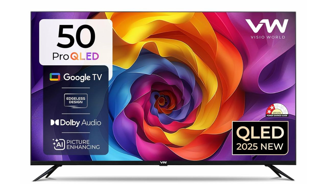 VW 50 inches Pro Series 4K Ultra HD Smart QLED Google TV की कीमत और ऑफर्स: इसकी कीमत 54,999 रुपये है. इसे 61% डिस्काउंट के साथ 21,499 रुपये में खरीदा जा सकेगा. हर महीने 7,166 रुपये की ईएमआई देकर भी इसे खरीदा जा सकेगा. पुराना टीवी एक्सचेंज करने पर 2,740 रुपये तक का ऑफर मिलेगा. कई क्रेडिट कार्ड्स पर 3,000 रुपये तक का ऑफर दिया जाएगा.