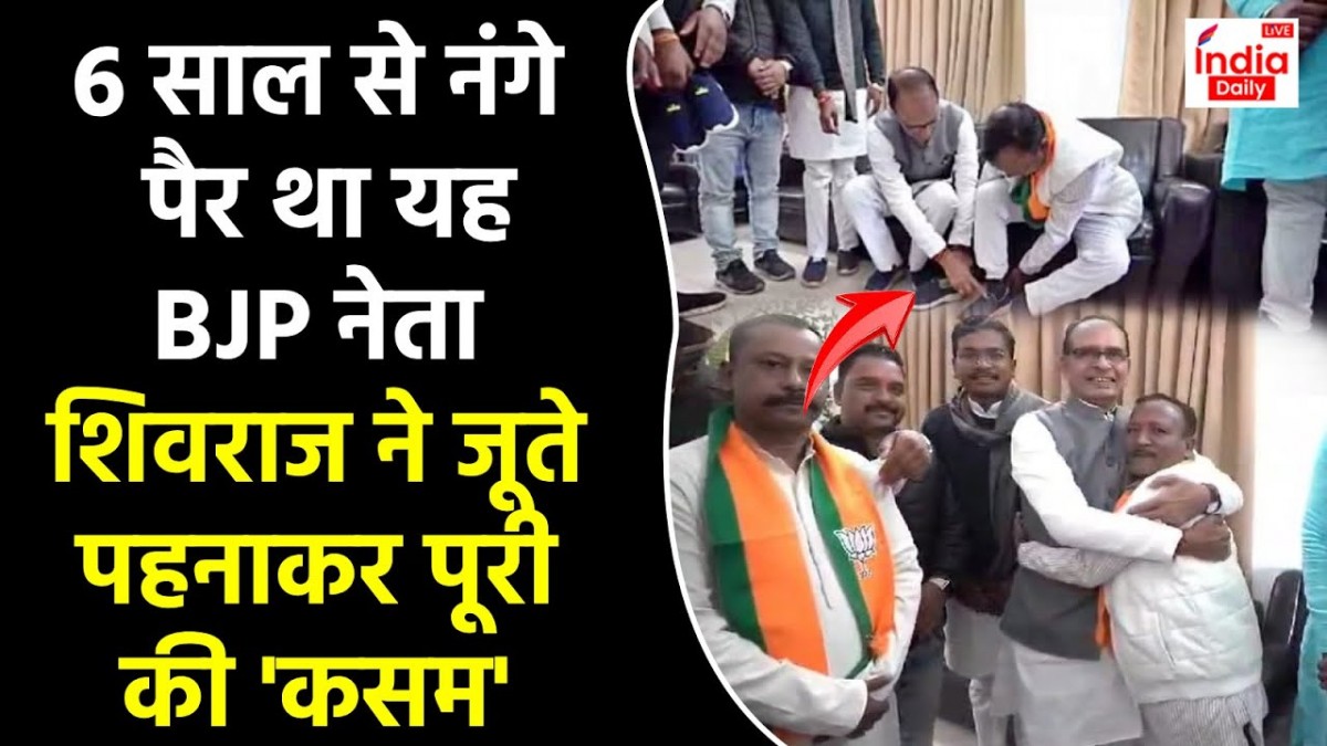 MP Viral Video : 6 साल से क्यों नंगे पैर था यह BJP नेता, Shivraj Singh ने जूते पहनाकर पूरी की 'कसम'