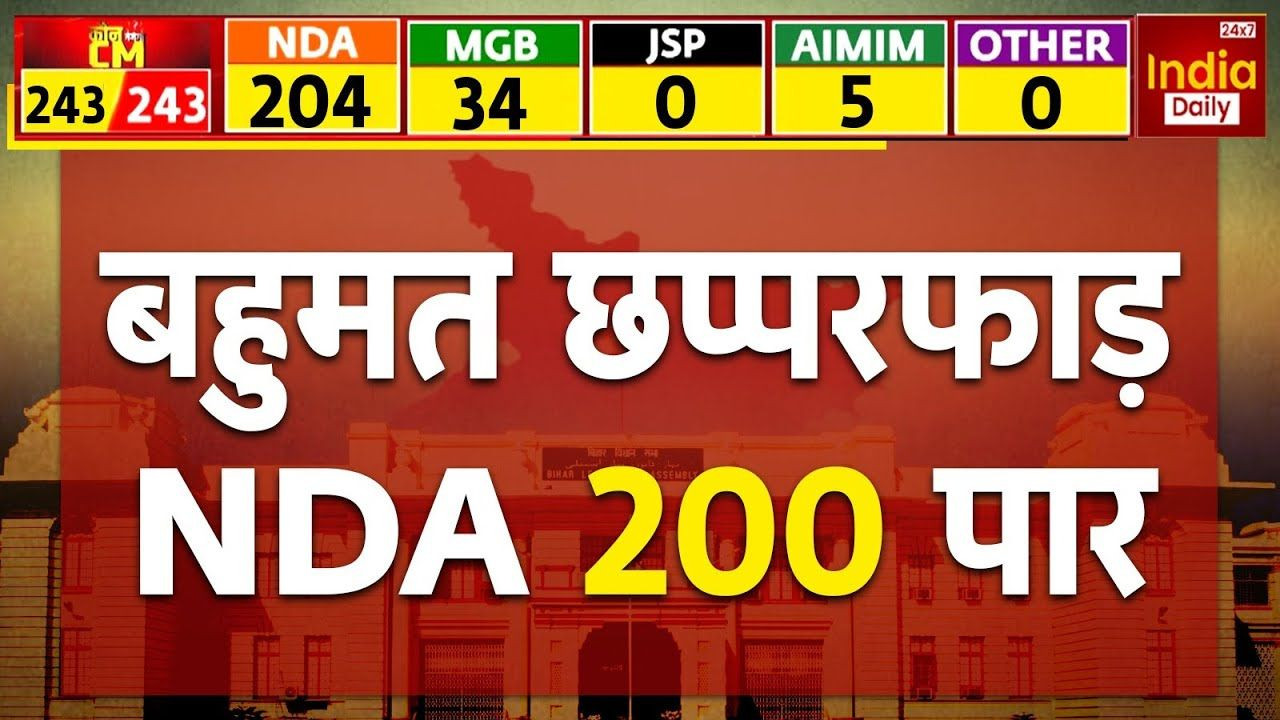 बिहार: बिहार चुनाव के नतीजे NDA के बड़े अंतर से जीतने की संभावना जता रहे हैं. NDA अभी भी 200 से ज्यादा सीटों पर आगे चल रहा है. BJP पहली बार राज्य में सबसे बड़ी पार्टी बनने की ओर अग्रसर है. BJP 90 सीटों पर आगे चल रही है, जबकि JDU 77 सीटों पर, लोजपा 19 सीटों पर, हम 5 सीटों पर और RLM 4 सीटों पर आगे चल रही है. महाअघाड़ी का वोट शेयर लगातार 40 से नीचे बना हुआ है.