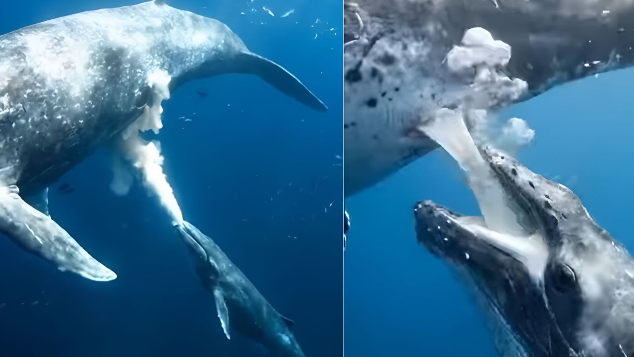 नई दिल्ली: सोशल मीडिया की दुनिया में आजकल एक कुदरती अजूबा वायरल हो रहा है. एक ऐसा अनोखा नजारा जिसे देखकर शायद आपको भी अपनी आंखों पर यकीन न हो. सचमुच समुद्र की गहराइयों से मां के प्यार की एक दिल छू लेने वाली तस्वीर सामने आई है, जिसने इंटरनेट की दुनिया को मंत्रमुग्ध कर दिया है. इस फुटेज में एक व्हेल अपने बच्चे को दूध पिलाती हुई दिखाई दे रही है.