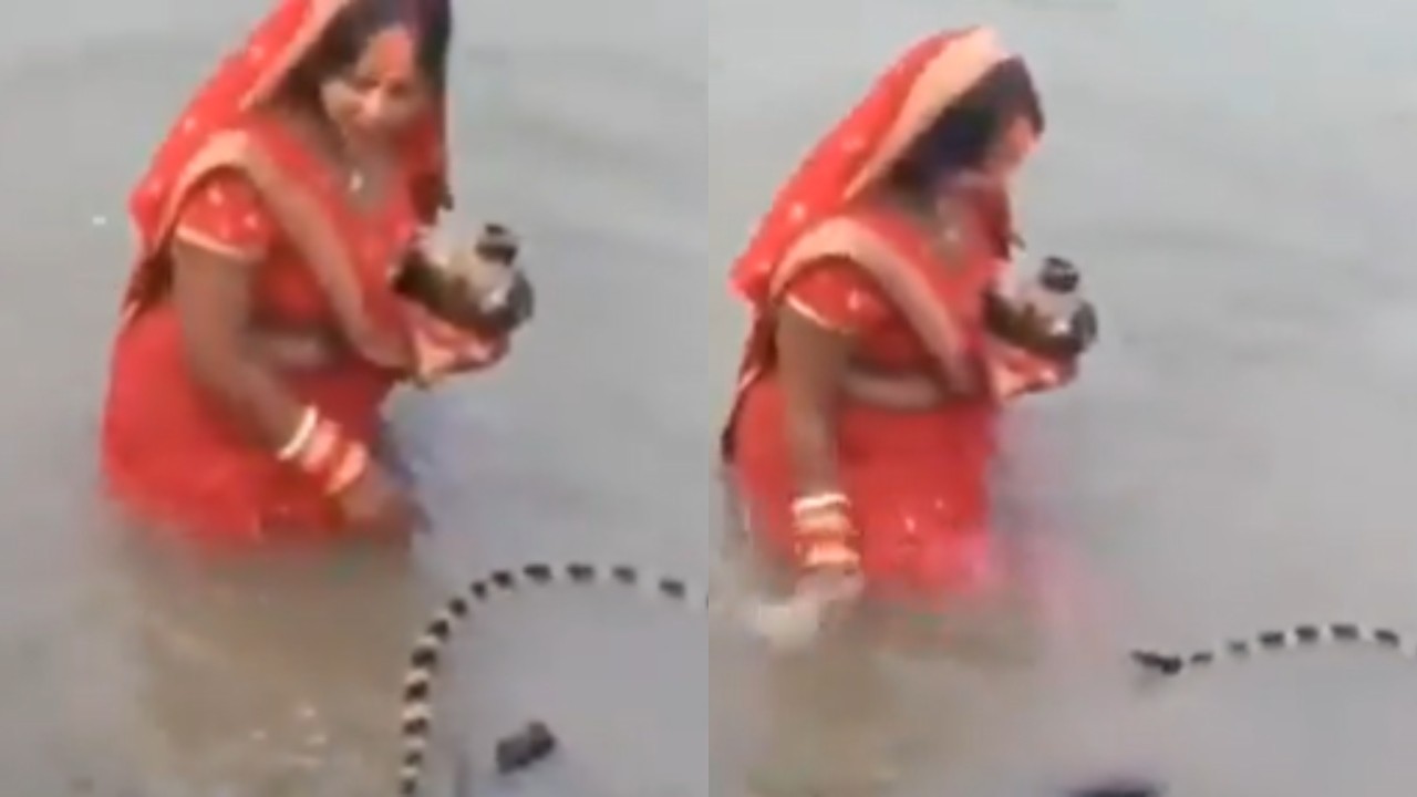 यह घटना छठ पूजा के दौरान हुई, जब एक महिला नदी में खड़ी होकर अपने पूजा में लीन थी. तभी अचानक, एक सांप उसकी ओर बढ़ता हुआ दिखाई देता है. अक्सर इस तरह की स्थिति में लोग घबराहट में भागने की कोशिश करते हैं, लेकिन यह महिला बिना डर के खड़ी रही. उसने शांत रहकर सांप को अपने पास से गुजरने का रास्ता दिया, जो उसकी अनोखे साहस और संयम का प्रतीक है.