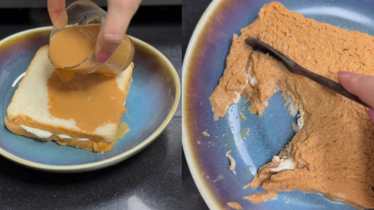 इस वायरल रेसिपी में तीन चीजें होती हैं कड़क चाय (मिल्क चाय), मलाई (फ्रेश क्रीम) और ब्रेड. इस चाय टोस्ट को बनाने के लिए, पहले क्रीम को दो ब्रेड स्लाइस के बीच फैलाया जाता है. फिर गरम चाय को इस मलाई सैंडविच पर डाला जाता है, जिससे ब्रेड पूरी तरह से चाय में डूब जाती है. चाय के साथ ब्रेड पूरी तरह से मुलायम हो जाती है और फिर इसे आसानी से चम्मच से काटा जा सकता है.