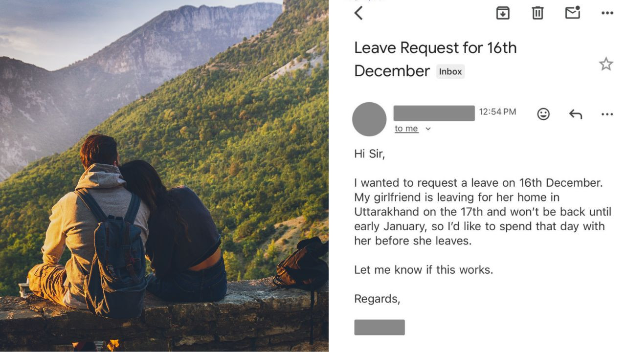 कर्मचारी ने अपने मैनेजर को मेल लिखकर बताया कि उसकी गर्लफ्रेंड 17 दिसंबर को उत्तराखंड अपने घर जा रही है और जनवरी की शुरुआत तक वापस नहीं आएगी. ऐसे में वह उसके जाने से पहले 16 दिसंबर को उसके साथ समय बिताना चाहता है. मेल में न कोई बहाना था और न ही काम से बचने की कोशिश, बल्कि सिर्फ सीधी और सच्ची बात रखी गई थी.