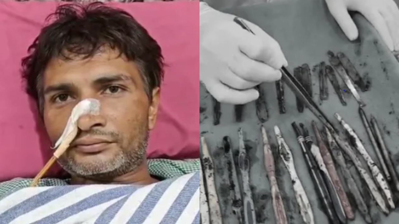UP News: उत्तर प्रदेश के गाजियाबाद स्थित एक नशामुक्ति केंद्र में एक मरीज गुस्से में बर्तनों के ढेर से चम्मच चुराकर अपने गले में डाल लिया. कई दिनों बाद, उसे पेट में दर्द की शिकायत हुई और सर्जरी के ज़रिए 29 स्टील के चम्मच, 19 टूथब्रश और दो पेन निकाले गए.