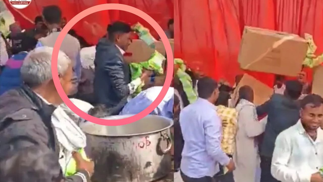 हमीरपुर के स्वामी ब्रह्मानंद विद्यालय के खेल मैदान में आयोजित सामूहिक विवाह कार्यक्रम में जलपान काउंटर खुलते ही अफरा-तफरी मच गई. भीड़ बेकाबू होकर आलू-पकौड़ा और चिप्स के पैकेट छीनने लगी.