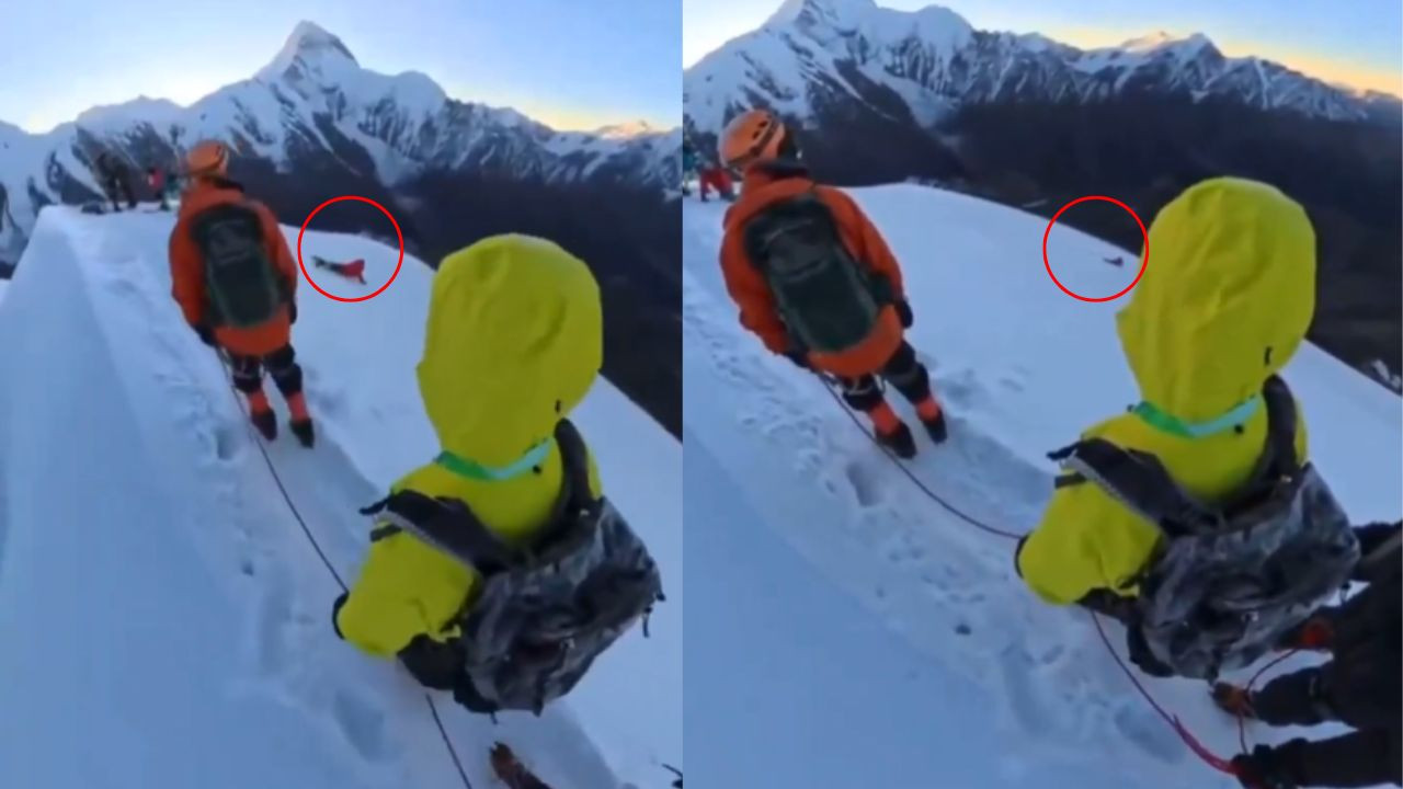 The heart-stopping fall on the icy 5,588-meter sub-peak of Mount Gongga was caught in… pic.twitter.com/CY49zTRQ44
