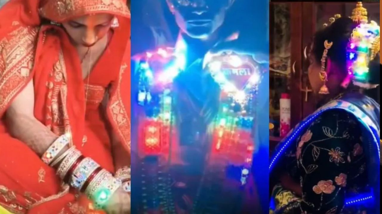 भारतीय शादियों में अब परंपरा के साथ टेक्नोलॉजी का अनोखा मेल देखने को मिल रहा है. सोशल मीडिया पर तीन वीडियो तेजी से वायरल हो रहे हैं, जिनमें दुल्हन और दूल्हे ने लाइट वाली ड्रेस पहनकर सबका ध्यान खींच लिया है. एक दुल्हन की चूड़ियों में कलर चेंजिंग लाइट्स लगी हैं, दूसरे में पूरा लहंगा और बाल लाइटों से जगमगा रहे हैं. वहीं दूल्हा एलईडी वाली शेरवानी में बारात में एंट्री कर रहा है. ये वीडियो देखकर लोग हैरान और हंस भी रहे हैं.