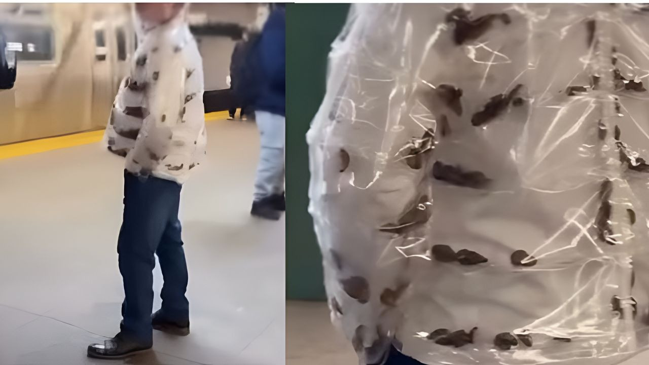 A man was spotted at a New York City metro station wearing a jacket with multiple pockets containing live cockroaches. pic.twitter.com/YV6Rhz8GrG
