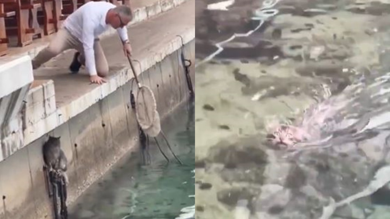 वह चाहता है कि बिल्ली पूल स्किमर नेट में कूद जाए, लेकिन बिल्ली इतनी डरी हुई थी कि वह उस नेट में घुस ही नहीं रही थी. अगर वह बिल्ली को उसी हाल में छोड़ देता तो उसकी मौत हो सकती थी लेकिन भला हो उस शख्स का उसने बिल्ली को पूल से निकालने तक हार नहीं मानी. आखिर कार वह बिल्ली उसके जाल में फंस जाती है और पूल से बाहर जा जाती है.